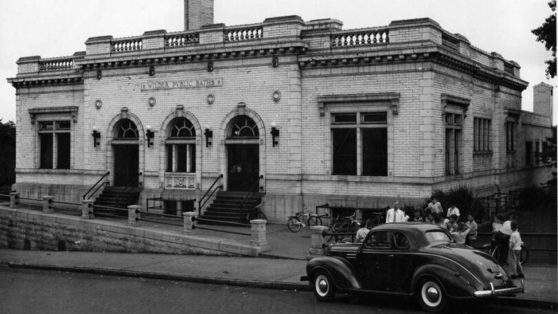 It’s hard to imagine a time when taking a bath or shower in your own home wasn’t possible, but the convenience of showering on a regular basis is a modern luxury. One hundred years ago, many working-class homes in St. Paul lacked bathing facilities. People living in rooming houses and along the Mississippi flats didn’t even have running water. Public beaches were a popular way to wash away the dirt and sweat from hard work, but they were only available in the summer. Recognizing the public need for a year-round facility for people to clean themselves, the Amherst H. Wilder Charities established a facility where anyone could have a “shower bath”—no matter the weather.