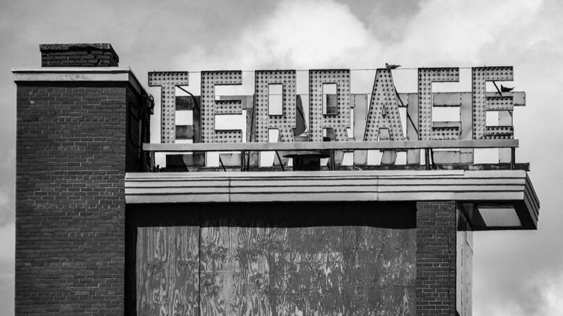 Located in Robbinsdale, the international-style Terrace Theatre opened on May 23, 1951. At the time, it was one of the most luxurious and modern theaters in the country. The lobby was an ultramodern gem with large windows, metallic fixtures, and a sunken den complete with fireplace. A television lounge and nursery rooms for mothers with children were also available. Inside the theater, customers were treated to comfortably deep, plush seats and a state-of-the-art projection system.