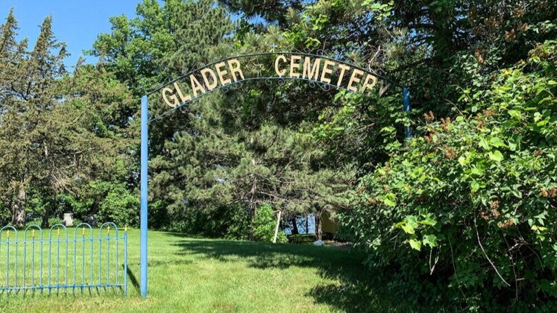 Glader cemetery is located on a hill overlooking South Center Lake in Lindström. It is the oldest Lutheran cemetery in Chisago county and was affiliated with the Chisago Lake Lutheran Church. The cemetery is no longer actively in use with all but one burial taking place prior to 1922. Some might recognize Glader Cemetery from author Vilhelm Moberg’s popular series, The Emigrants. The series follows the journey of a group of emigrants from Sweden to the United States in 1850, coinciding with the beginning of the first significant wave of immigration to the United States from Sweden. Characters Karl Oskar and Kiristina settle in Minnesota and live out their days in Chisago county. Their final (fictional) resting place is Glader Cemetery.